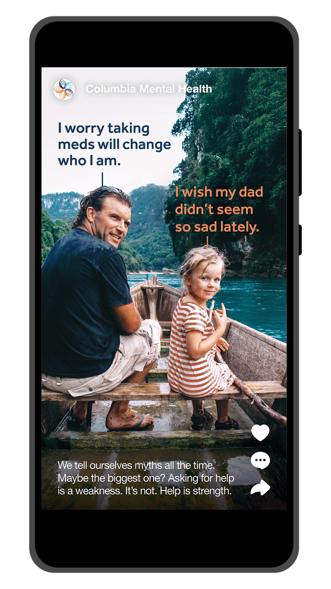 Many things keep people from getting the help they need. Often, those things are just in people’s head. This campaign, in a playful and unique way, illustrates and debunks them. We engage people with moments in life that are touching, funny, heartfelt, genuine, and always above all, human.